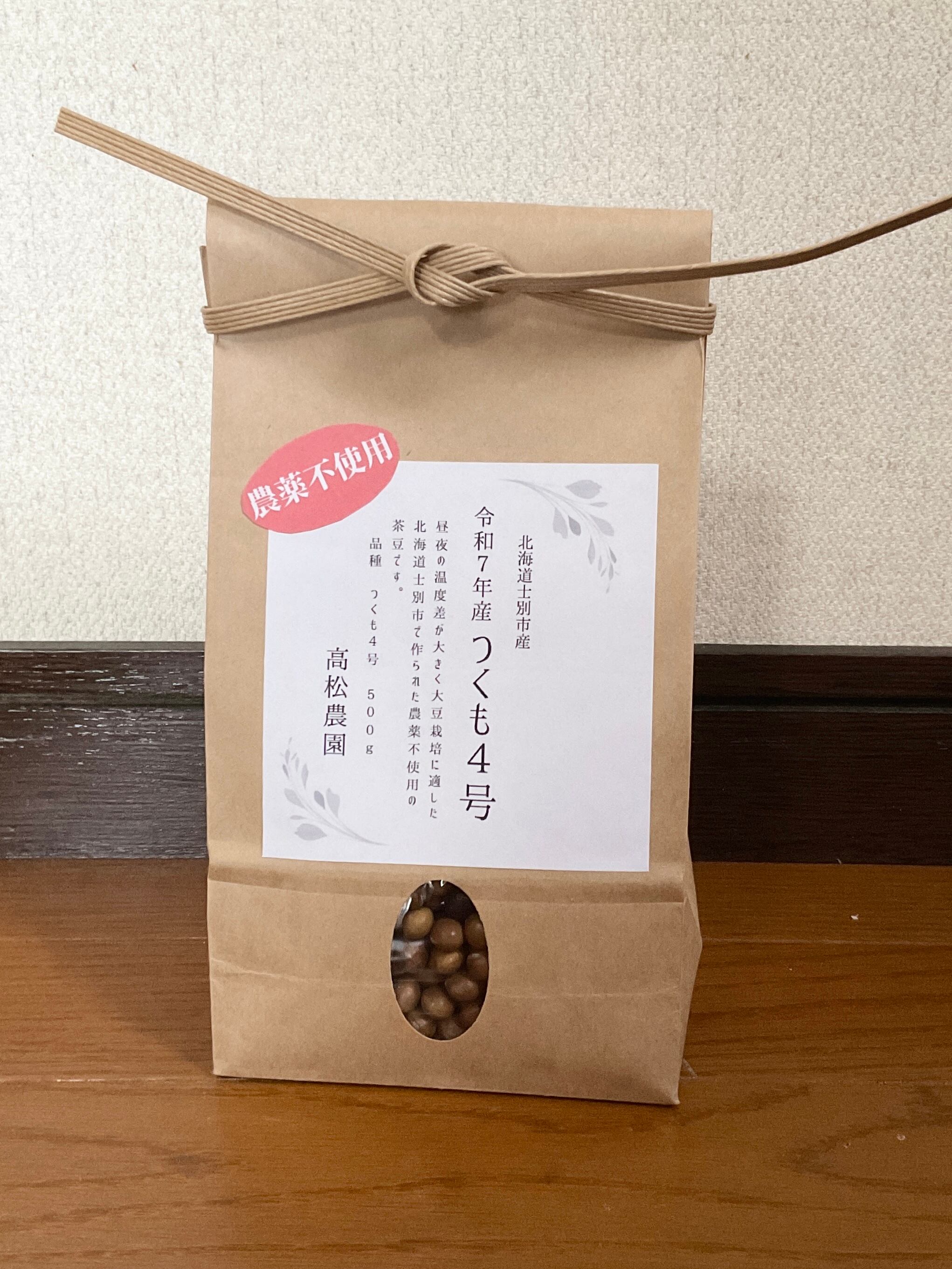 昼夜の温度差が大きく大豆栽培に適した北海道士別市で作られた茶豆のつくも4号です。種子消毒も除草剤も一切使っておりません。